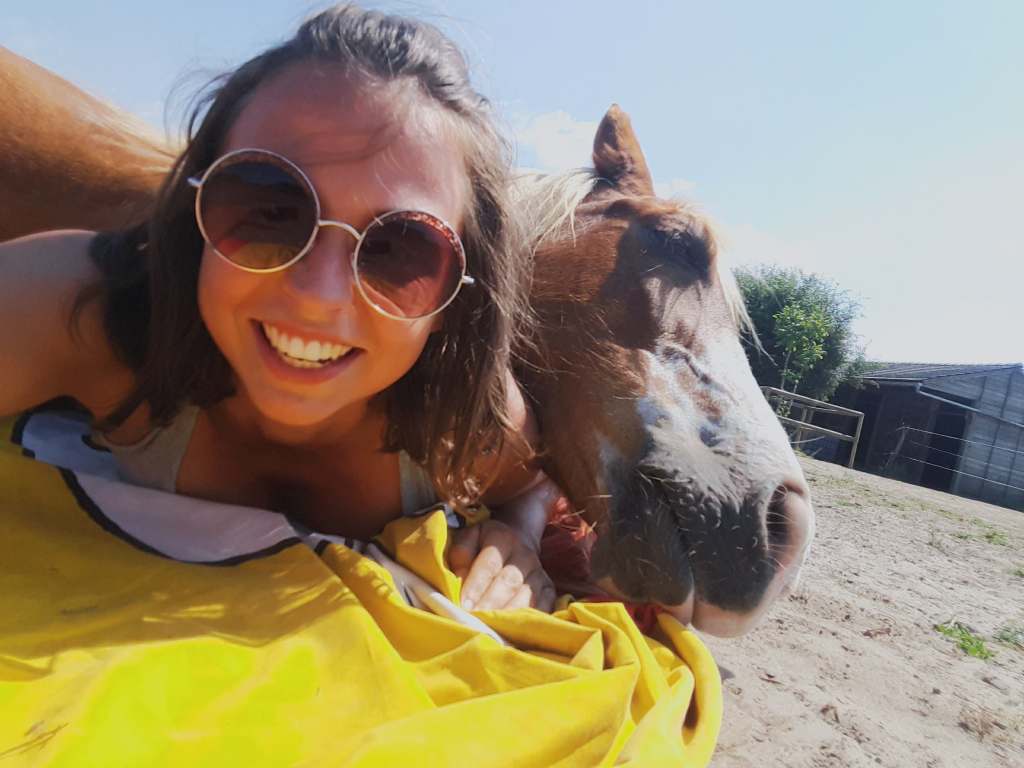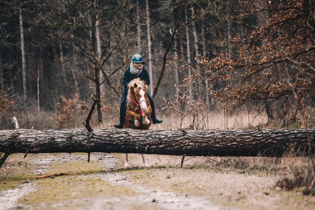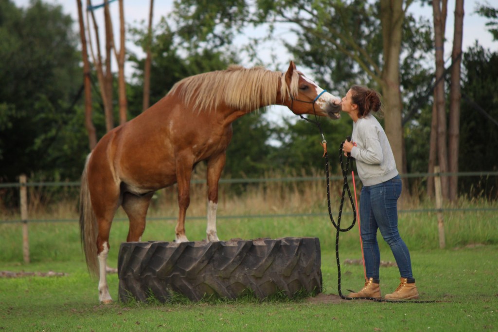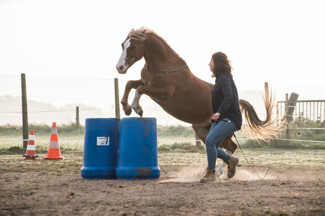 Daarnaast vind ik het belangrijk dat er uitdaging is in het werken met je paard, dat er altijd een doel is om naartoe te werken en dat er variatie zit in de trainingen. Ik daag mensen graag uit hun creativiteit naar een nieuw level te tillen en soms gewoon eens los buiten die comfortzone te springen. Scary, but super fun. In mijn lessen pleit ik ook graag voor het paard. In ons mensendenken durven we soms te geloven dat ons paard iets niet doet, enkel en alleen om ons te ‘pesten’. Een paard denkt niet zo en heeft altijd een goede reden om te handelen hoe het handelt. Het is onze taak als goede compagnon de route om uit te zoeken wat hij ons wil duidelijk maken. Een taak waar ik jou heel graag bij help.